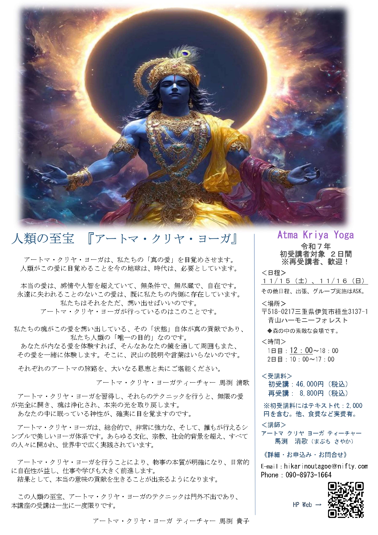 それぞれのアートマの旅路を、大いなる恩恵と共にご堪能ください。 馬渕 清歌(まぶち さやか) 拝